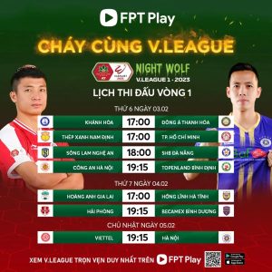 Xem V.League trọn vẹn duy nhất trên FPT Play Kể từ ngày 03/02, các sân cỏ trong nước sẽ chính thức quay trở lại với vòng 1 của giải Bóng đá Vô địch Quốc gia Night Wolf V.League 1 – 2023. Mùa giải năm nay được kỳ vọng là giải đấu chứa đựng nhiều bất ngờ và kịch tính. Trận derby thủ đô giữa Viettel và Hà Nội sẽ là trận đấu tâm điểm của vòng đấu đầu tiên.