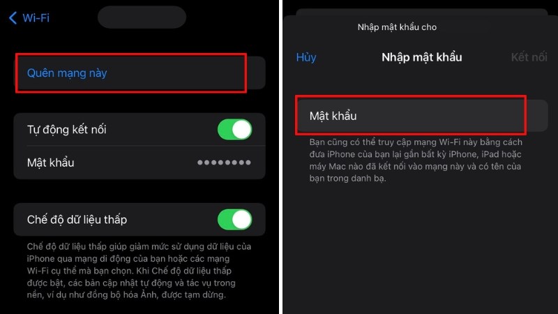 - Nhấp quên mạng này và nhập lại mật khẩu