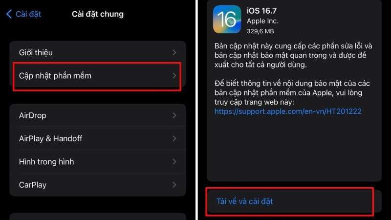 - Bước 2: Sau đó, chọn Cập nhật phần mềm > chọn mục Tải về và cài đặt.